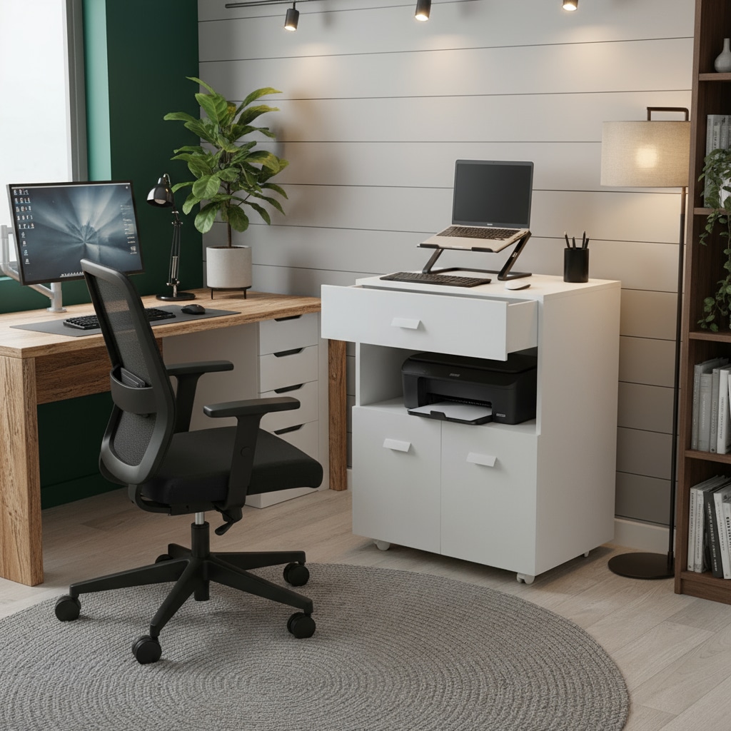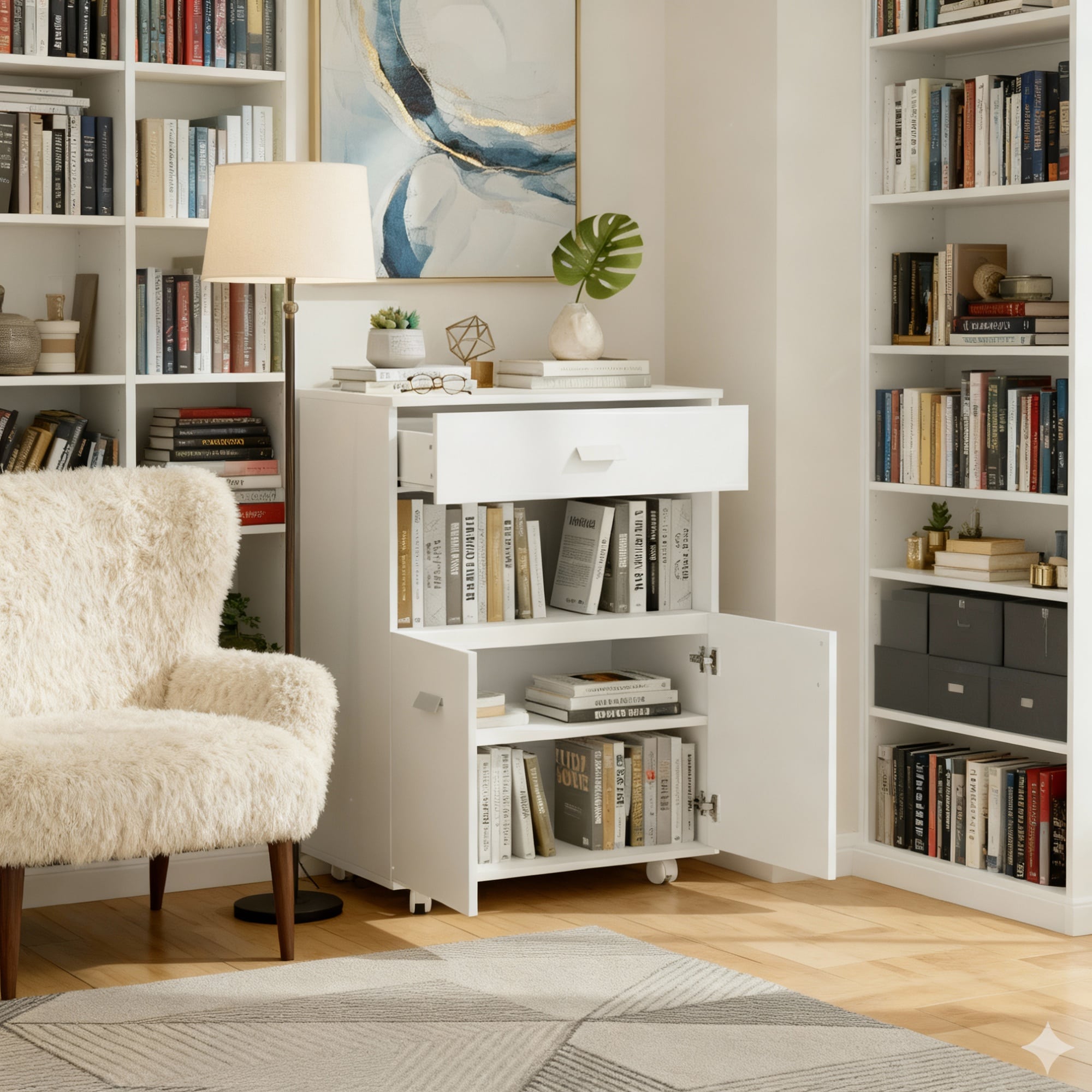 פתרון אחסון מושלם למטבח ארון שירות נייד המשלב אחסון ועיצוב בגוון לבן יוקרתי