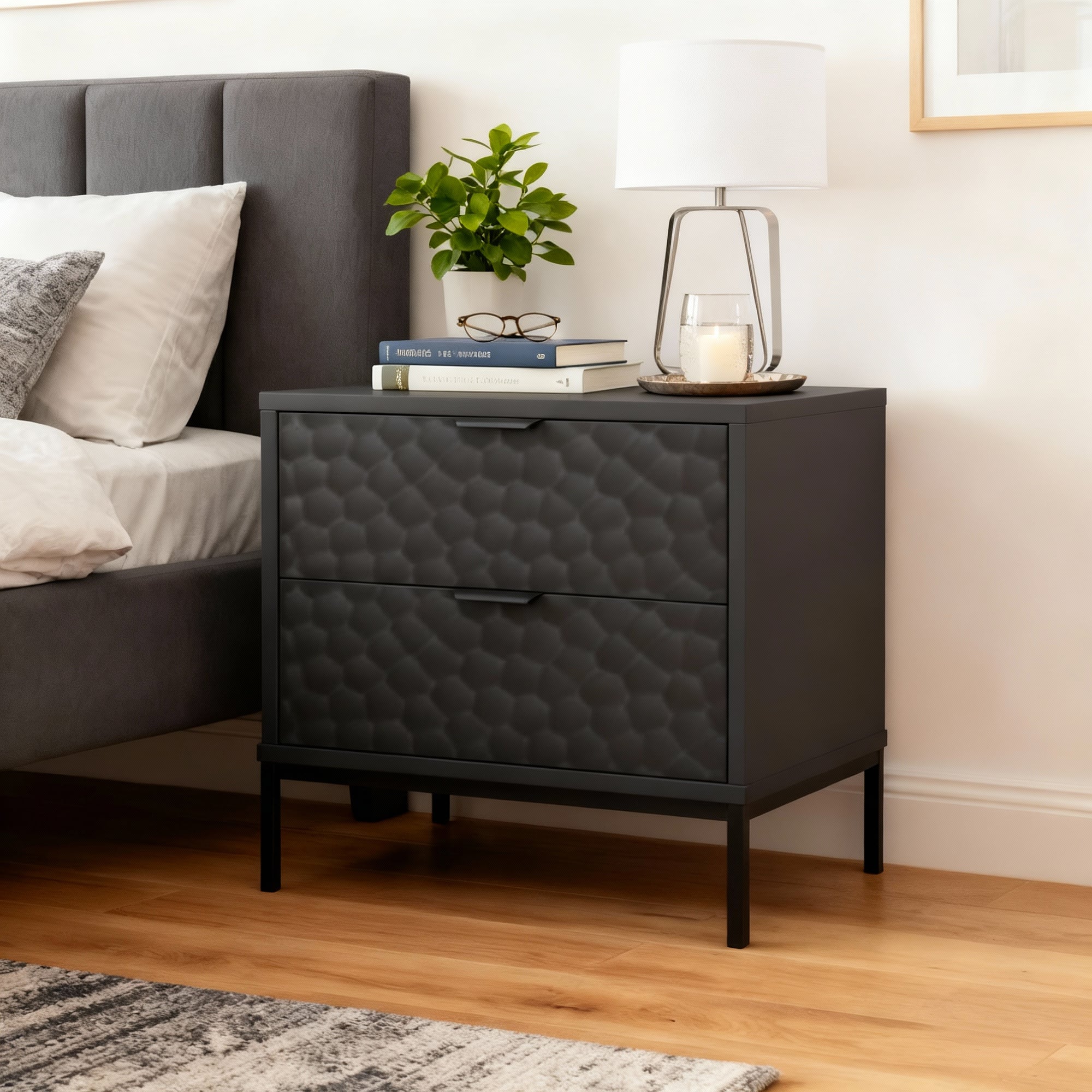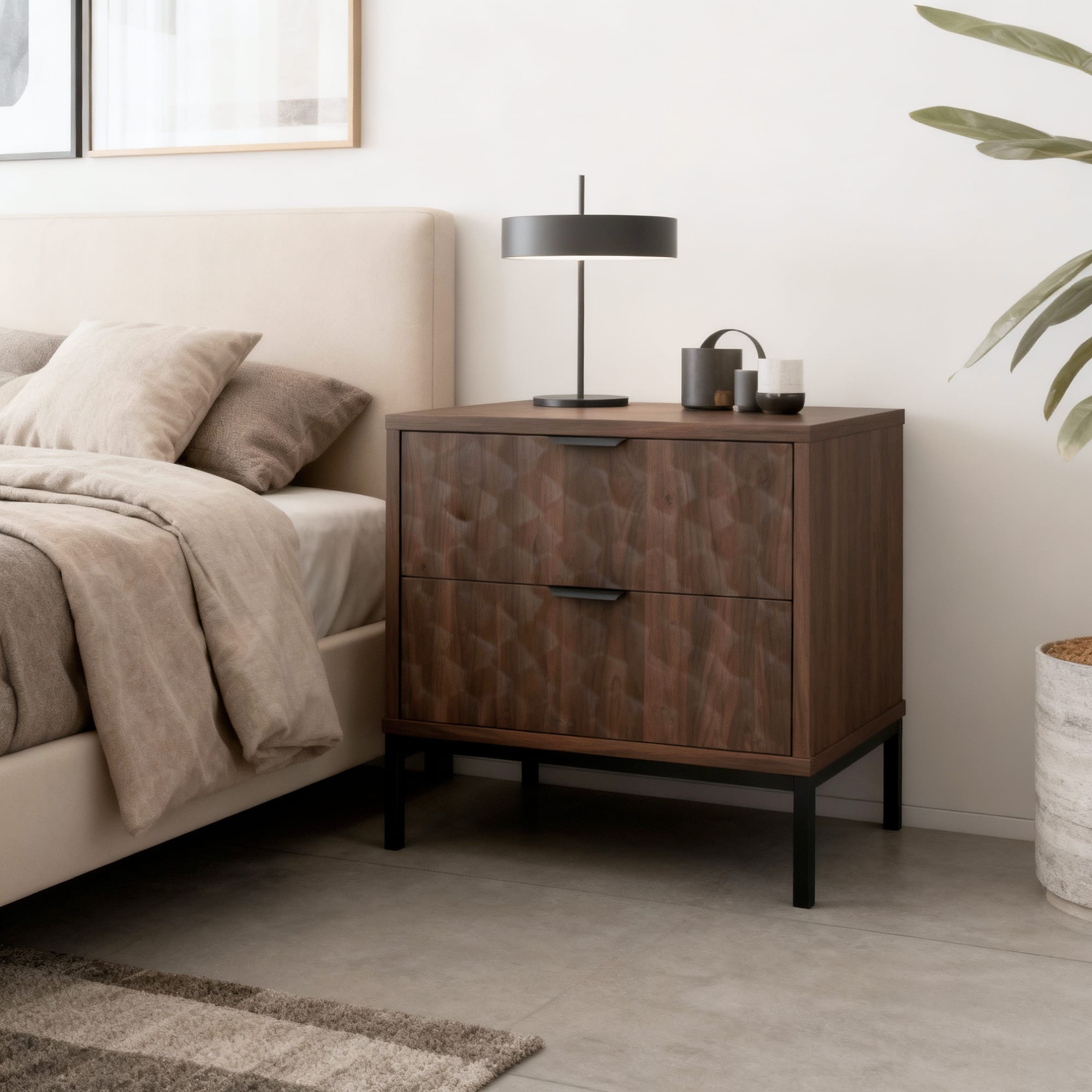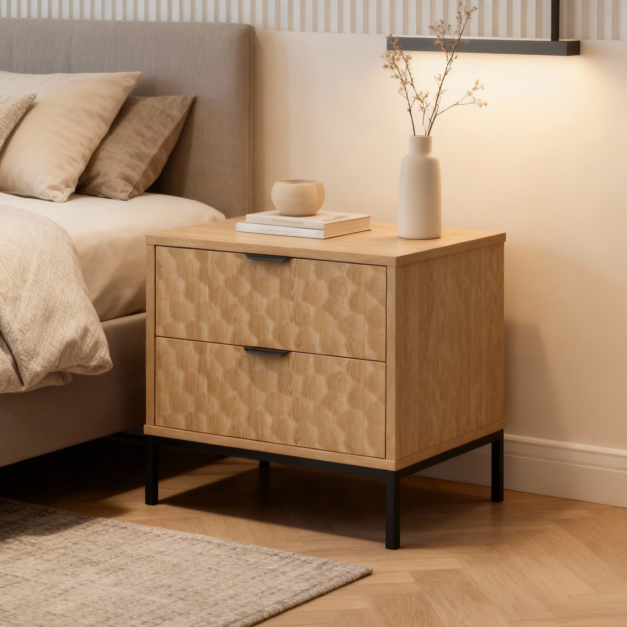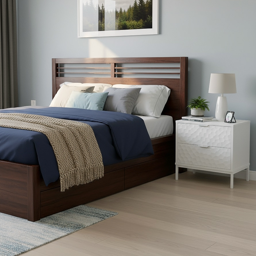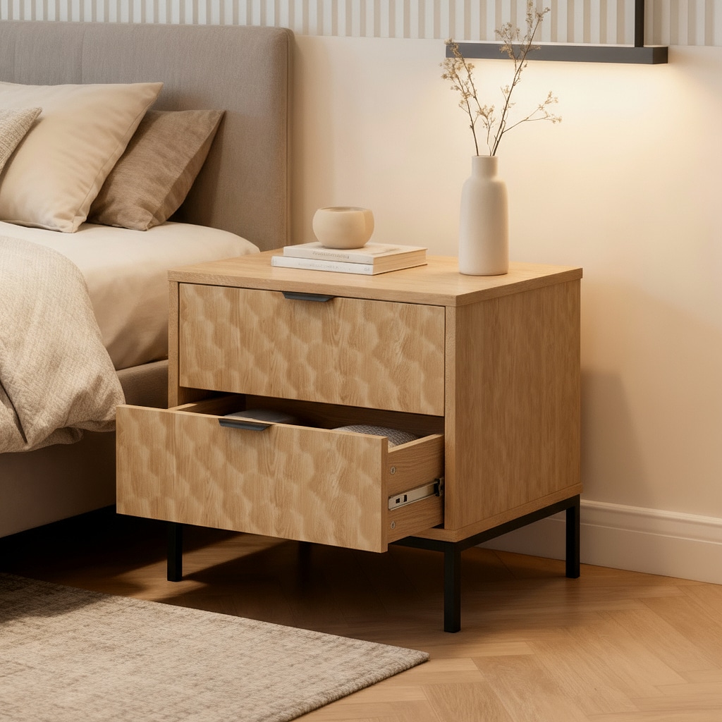 שני מגירות רחבות מאפשרות אחסון דיסקרטי כך שהחדר שלך נשאר מסודר ומלא בשלווה