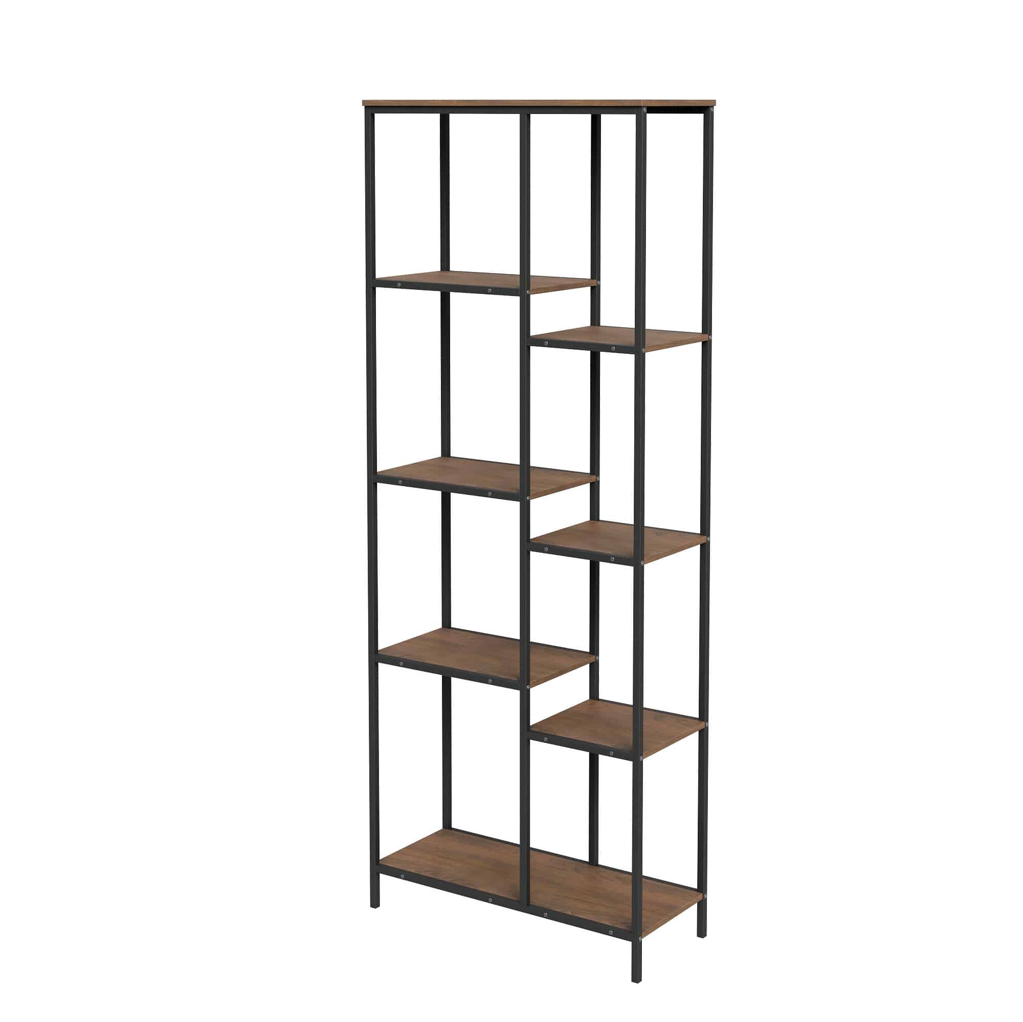 מדפים אגוז עם מתכת מושחרת