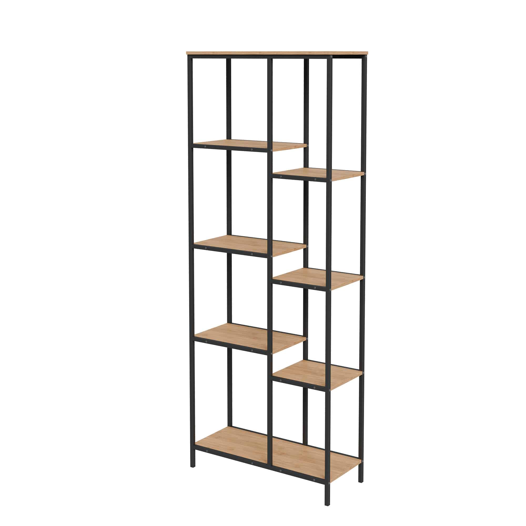 מדפים אלון עם מתכת מושחרת