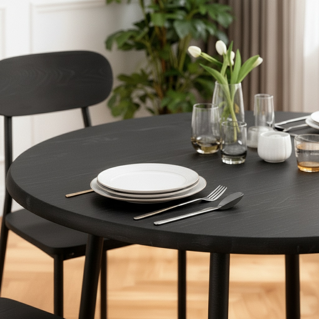 פינת האוכל עשויה משבבי עץ דחוסים בציפוי PVC איכותי ורגלי מתכת חזקות