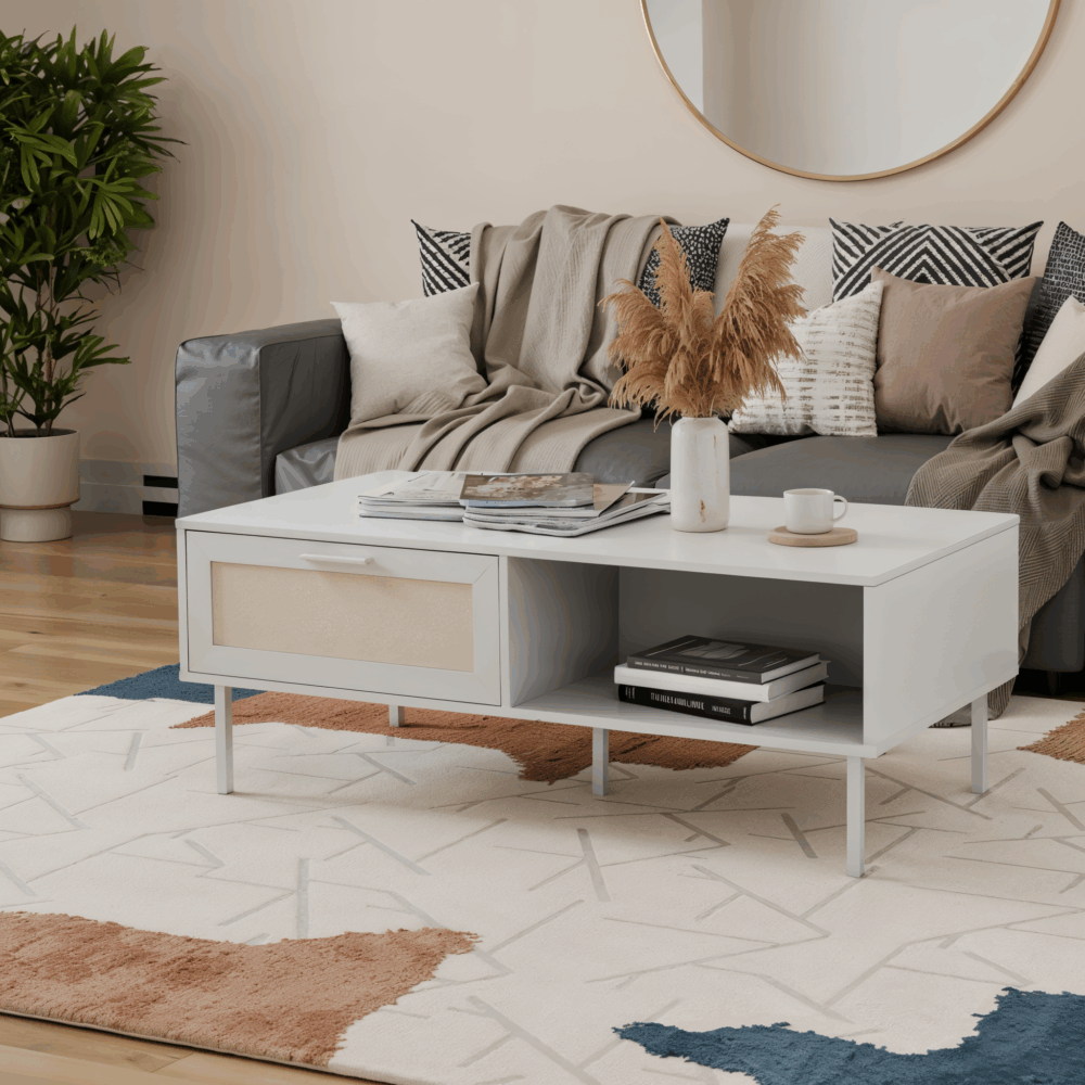 שולחן סלון מודרני עם מגירה בסגנון ראטן דגם איסטנבול