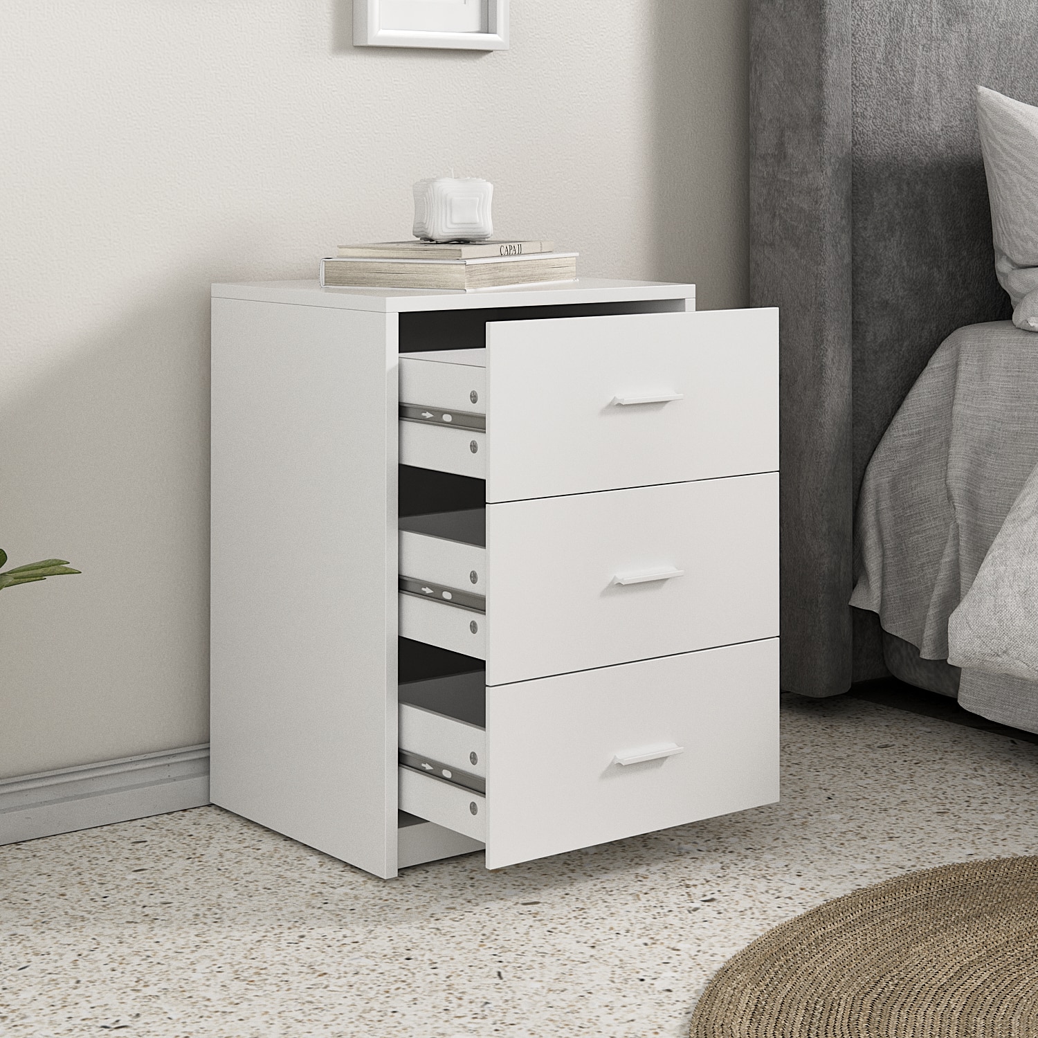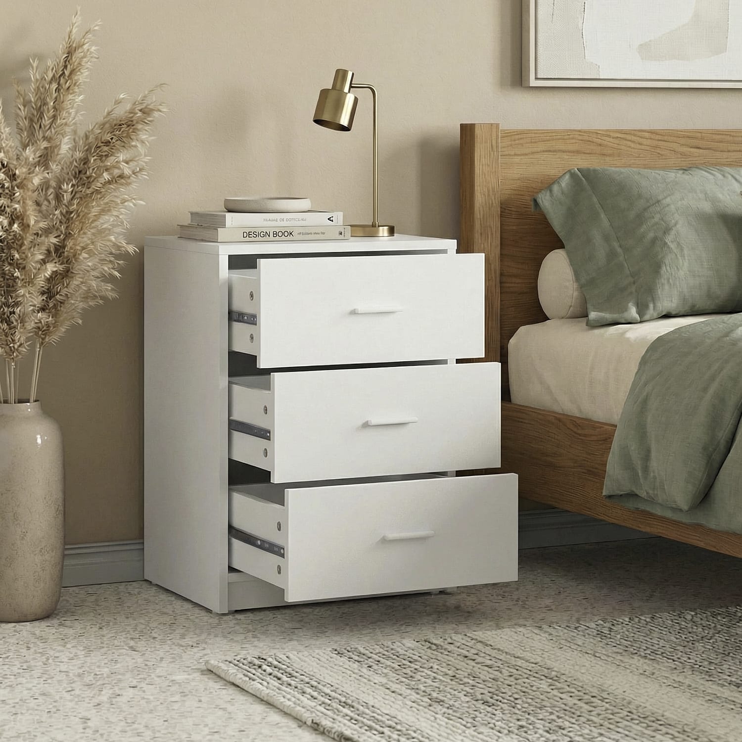 3 מגירות מרווחות לאחסון נוח ונגיש מסילות נוחות וידיות מודרניות לפתיחה קלה